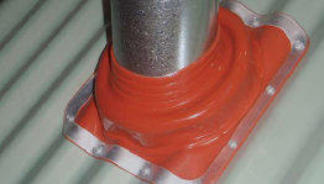 DEKTITE pipeboots come in either EPDM rubber or high temperature, red silicone. Silicone are typically used in higher temperature applications, like B-Vent or direct vent chimneys, for example. They are NOT meant to be used on stove pipe.In order to determine whether a silicone boot is acceptable for a particular application;1.first determine the maximum temperature (both constant and intermittent) that is expected on the surface of the pipe from the appliance manufacturer2.next, check the DEKS spec. sheet to see if DEKTITE silicone pipeboots meet the required temperature requirements1 - a link to the spec. sheet can be found by clicking the link on the rightNon-professionals and do-it-yourselfers should always check with a professional installer to ensure they have the correct product for the application.Note: For Class A type double-walled chimneys, (eg. Selkirk Chimney), some jurisdictions require a 1” separation between the pipeboot and the outside wall of the chimney. Selkirk manufacturers a special kit for these installations that includes a #9 DEKTITE EPDM pipeboot and all the necessary hardware.